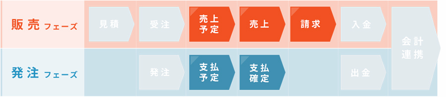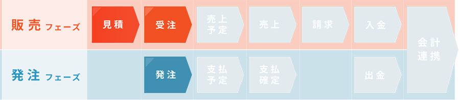 - 見積情報をもとに受注→売上・請求→入金と各フェーズはリレー形式で一元管理を行うため、処理すべき案件が即座に確認可能です。